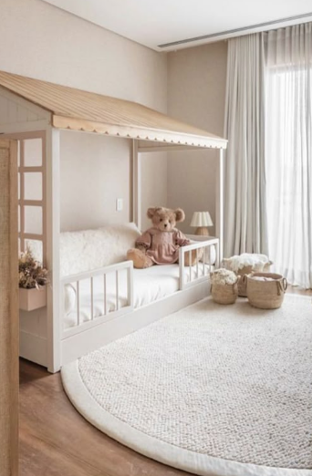 Puedes diseñarle un rincón acogedor y calentito con alfombras y cojines. Adorará pasar largos ratos en este adorable refugio mientras trastea con sus juguetes.