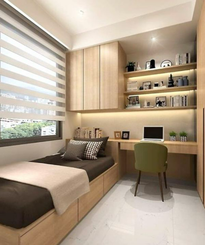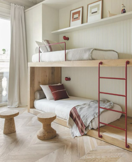 Unos estores fácilmente enrollables permitirán a los niños ajustar el nivel de luz a sus necesidades por el día, especialmente durante el estudio.
